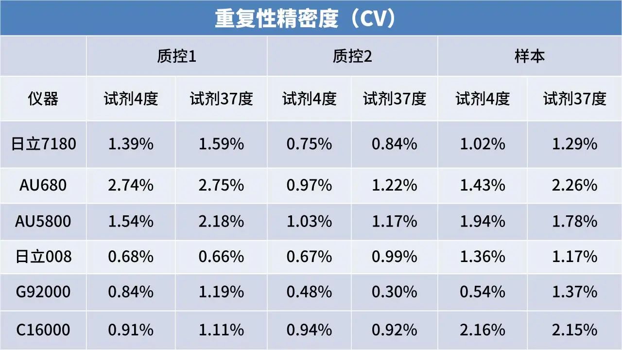 细密度优:各机型崎岖值质控、样本CV<3%