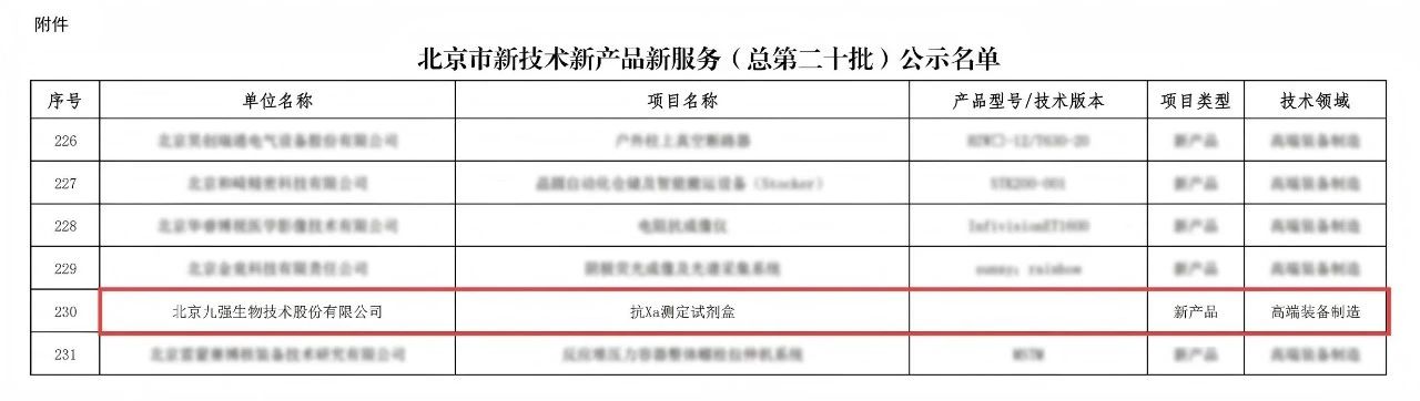 克日,,,,,,北京市科学手艺委员会、中关村科技园区管理委员会正式宣布《北京市新手艺新产品新服务(总第二十批)公示名单》,,,,,,尊龙官方生物抗Xa测定试剂盒乐成入选该名单!